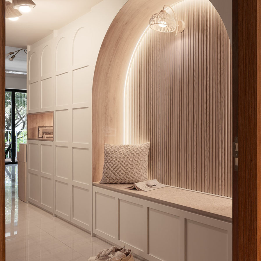 Discover the calming embrace of Scandinavian design. A white palette with wood touches and skillful arches seamlessly blend, creating a cozy haven that feels both chic and inviting
